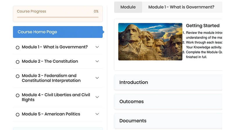 This course provides a comprehensive introduction to the concepts of the United States government.
