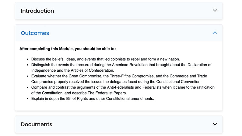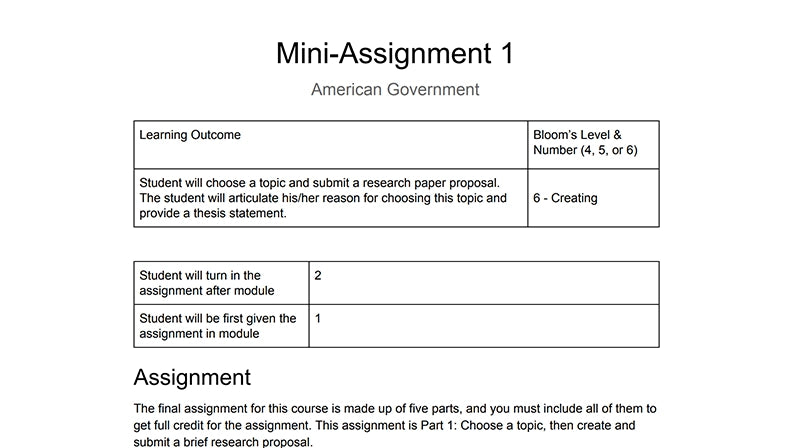 This is a self-paced online course, designed for 3 hours of college credit. It contains 13 modules, each with multiple lessons that support varied approaches to engaging with the topic, including readings, a video, and a knowledge-check quiz. To earn credit for the course, students must complete 56 low-stakes lesson knowledge-check quizzes, 13 module evidence assignments, 13 formative module quizzes, and 2 exams (proctored summative assessments).